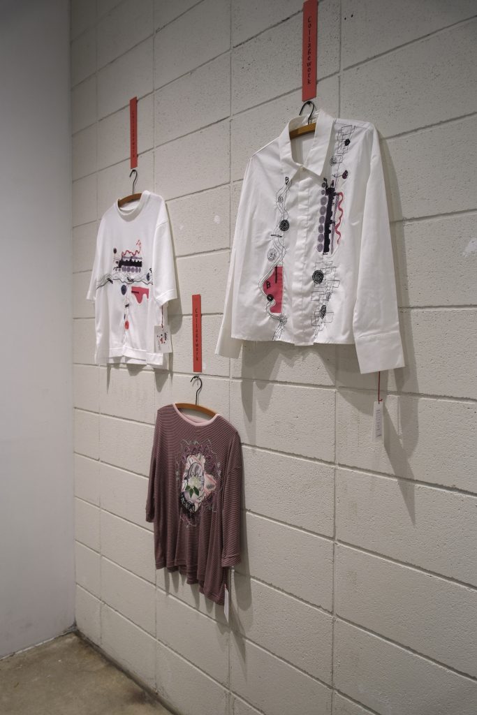 コラージュが施されたボディとなるTシャツやシャツのデザインから始まり、フロント部分に施されたコラージュもミシンや手縫いなどでひとつひとつ林さんの手作業で丁寧に作られていますので、その細かな手仕事を見るのも楽しいです。